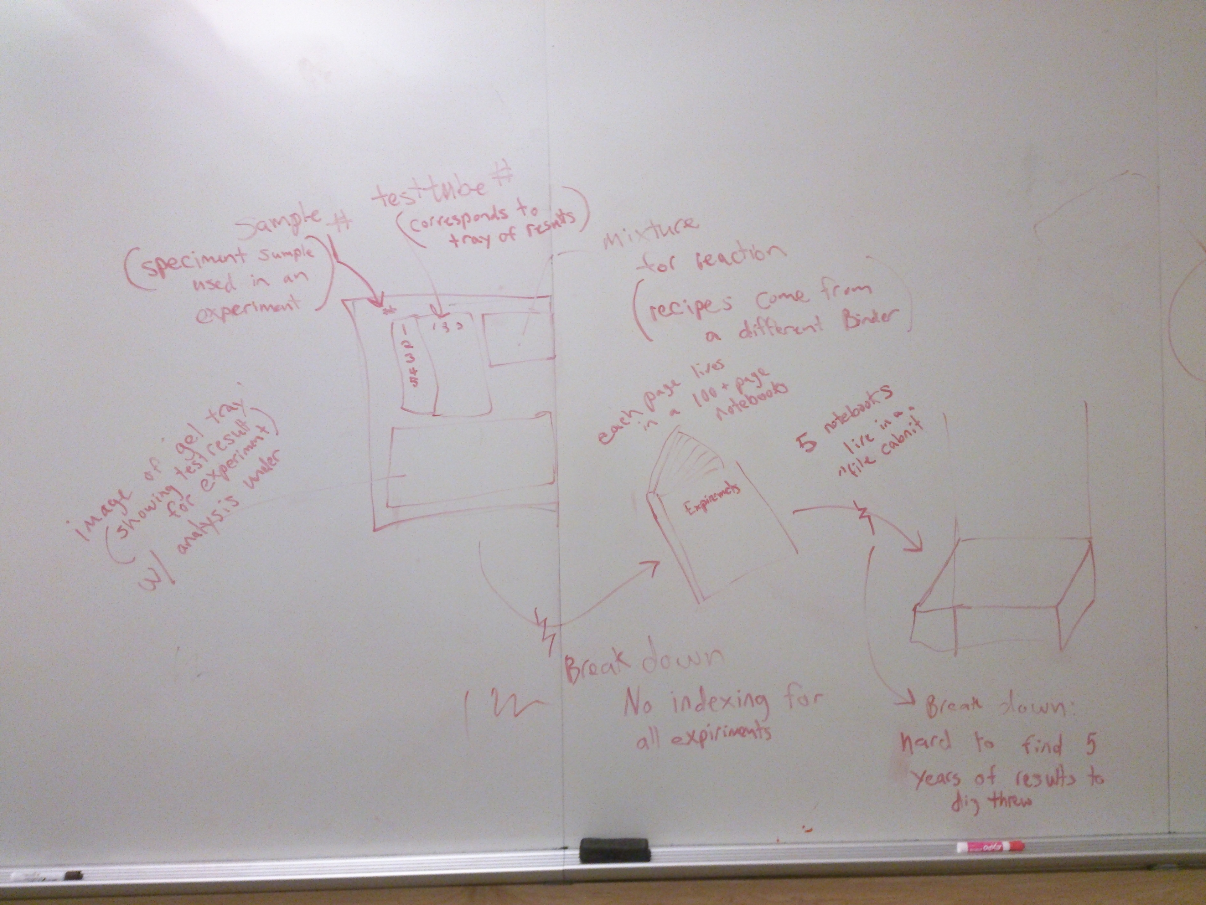My group used a contextual inquiry approach to conduct observations/interviews with laboratory biologists in a real lab setting. We then applied user-centered design techniques to prototype an application meant to improve their workflow by eliminating breakdowns which were identified in the observation/interview stage.